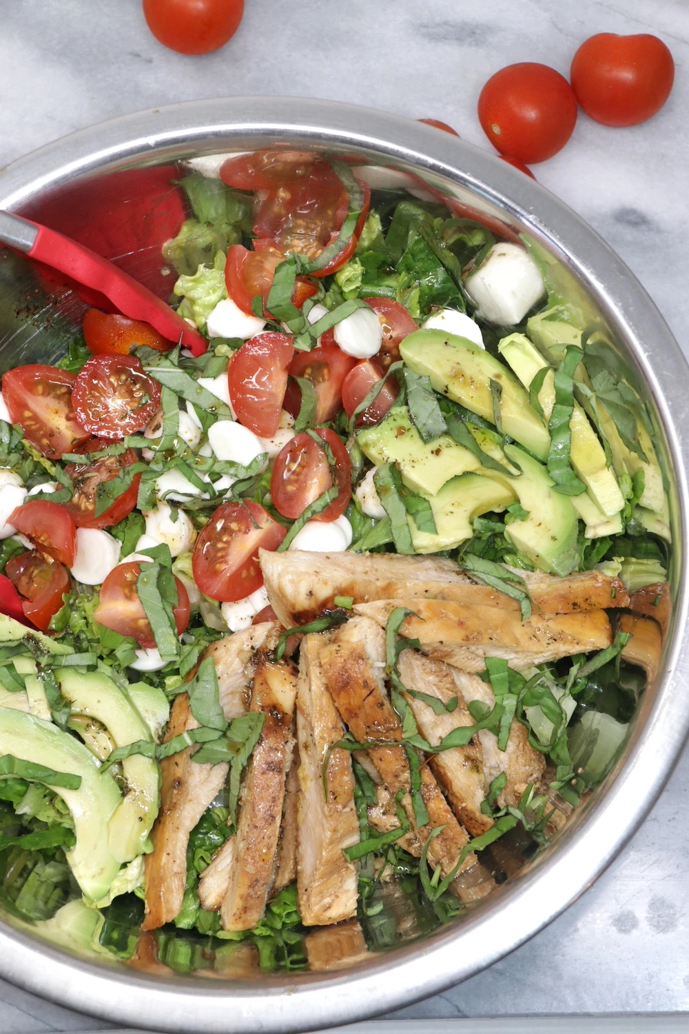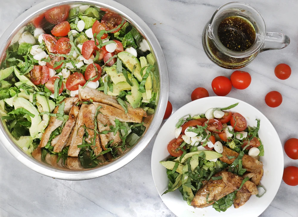 Balsamic Chicken Avocado Caprese Salad