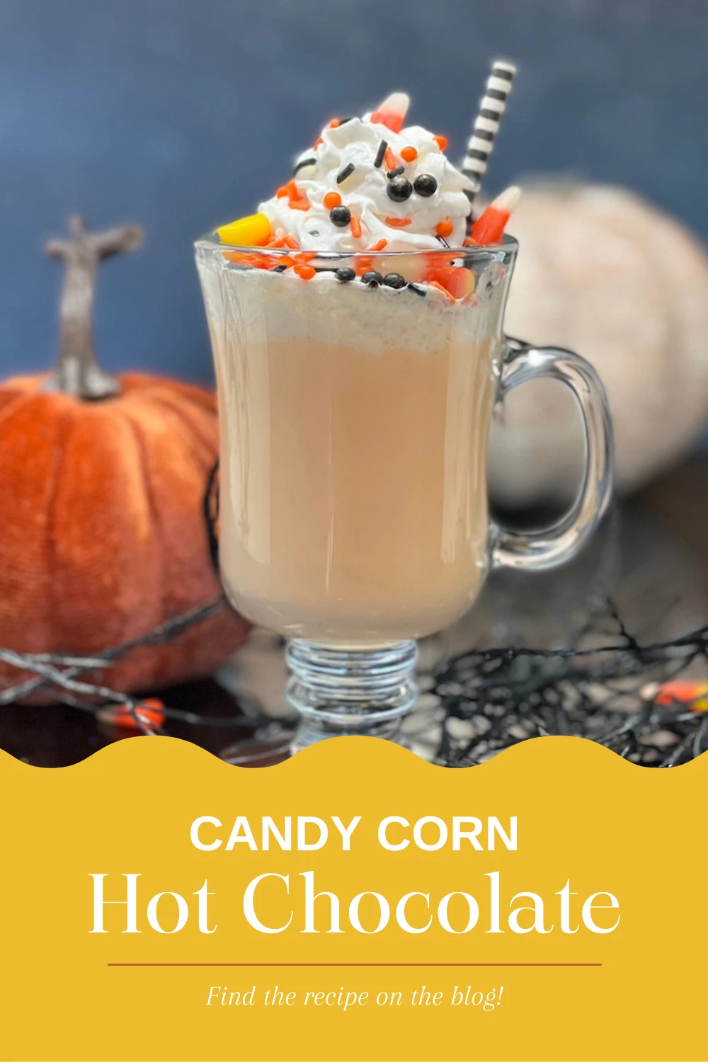 This Candy Corn Hot Chocolate would be fun to serve on Halloween night!