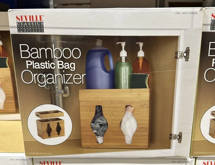 I spotted this new Seville Classics Bamboo Plastic Bag Organizer for $24.99.