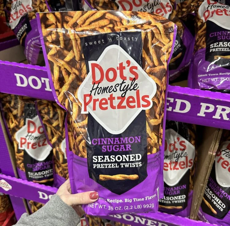 Costco now carries Dot’s Homestyle Pretzels Cinnamon Sugar Seasoned Pretzel Twists for $9.99.