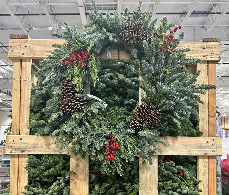 I love the fresh Costco wreaths, I think they are price great! Get this Noble Fir Wreath for $19.99.