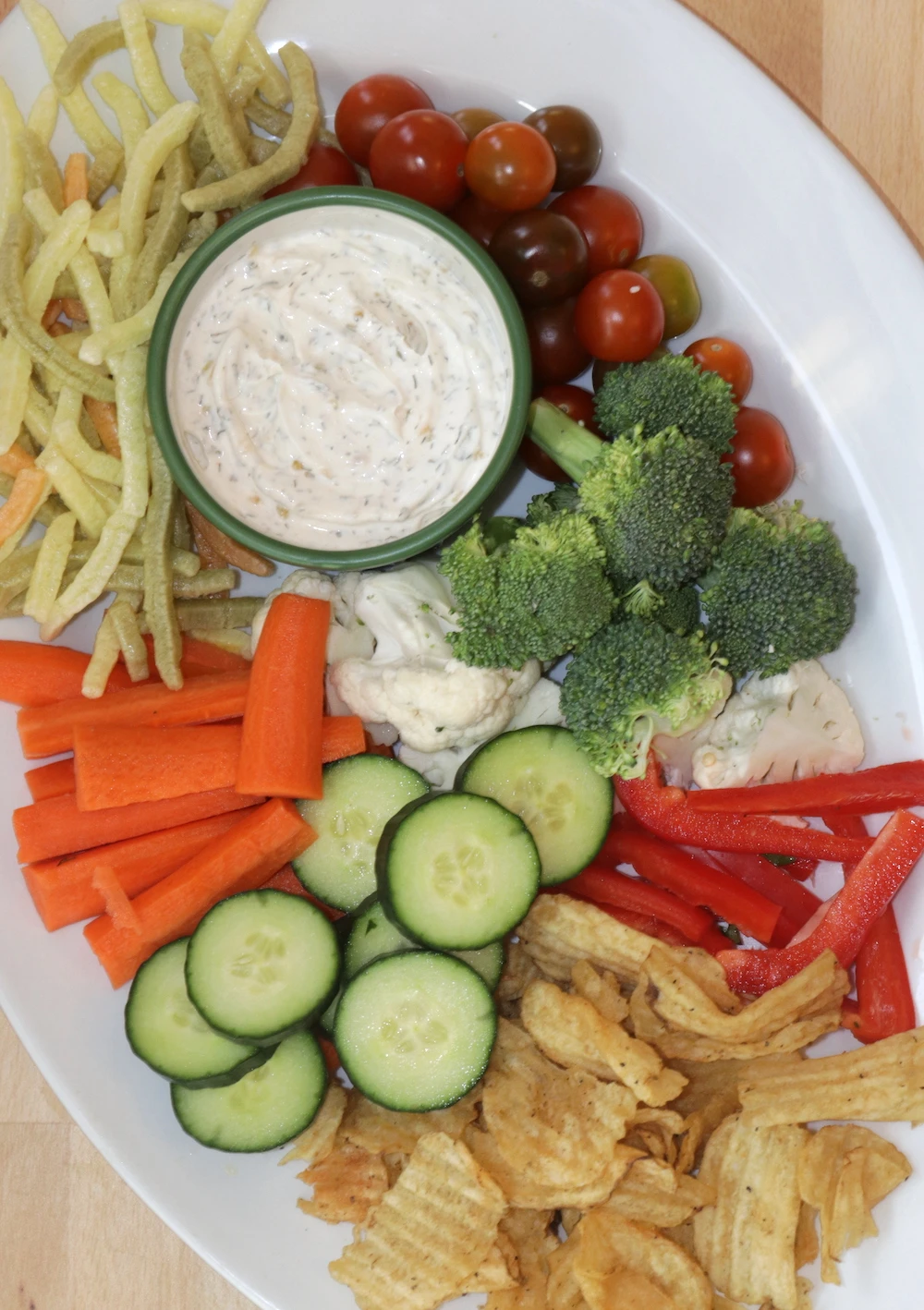 This dip is quick and simple, it’s amazing with a variety of snacks. Of course it is amazing as a veggie dip. but is also fantastic with potato chips, veggie chips, crackers and bread.