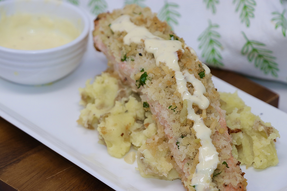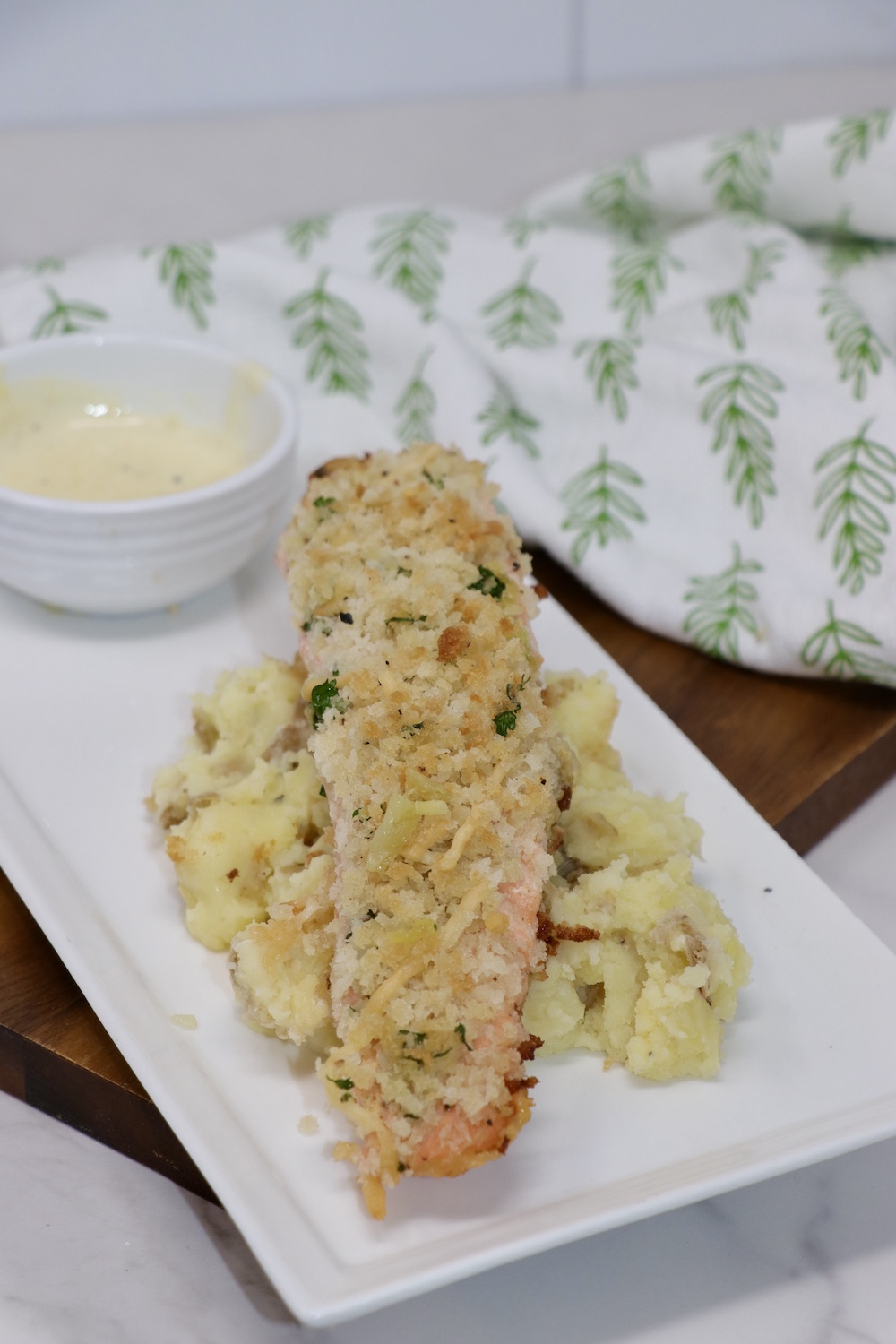 This Herb Crusted Salmon with Mustard Sauce is both elegant and comforting and perfect for a weeknight dinner!
