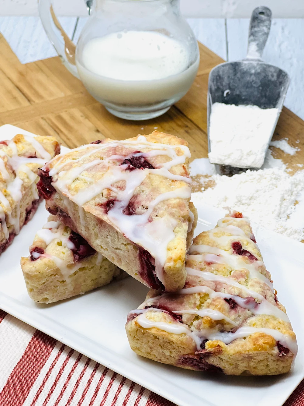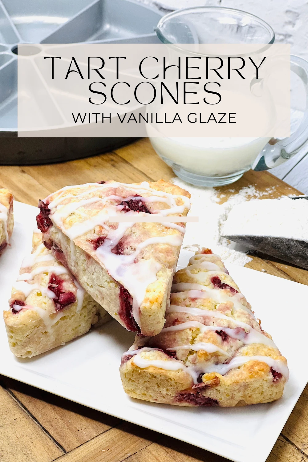 These Tart Cherry Scones with Vanilla Glaze are super easy to make and simply delicious.