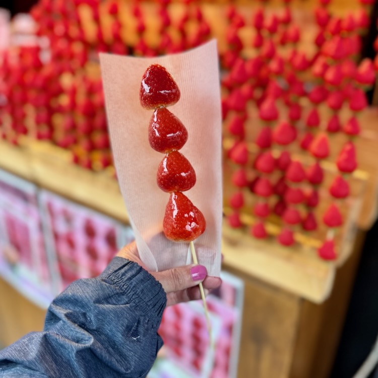 This was probably one of my favorite days! We went to Goin in the am to avoid crowds and then we visited the Ginkakuji (Silver Pavilion). The grounds were gorgeous and peaceful. Next we walked the streets to head to the Path of the Philosopher and stopped at a stand that had strawberries covered in a hardened sugar (Tanghulu). They were so good! The strawberries in Japan and so sweet and fresh!